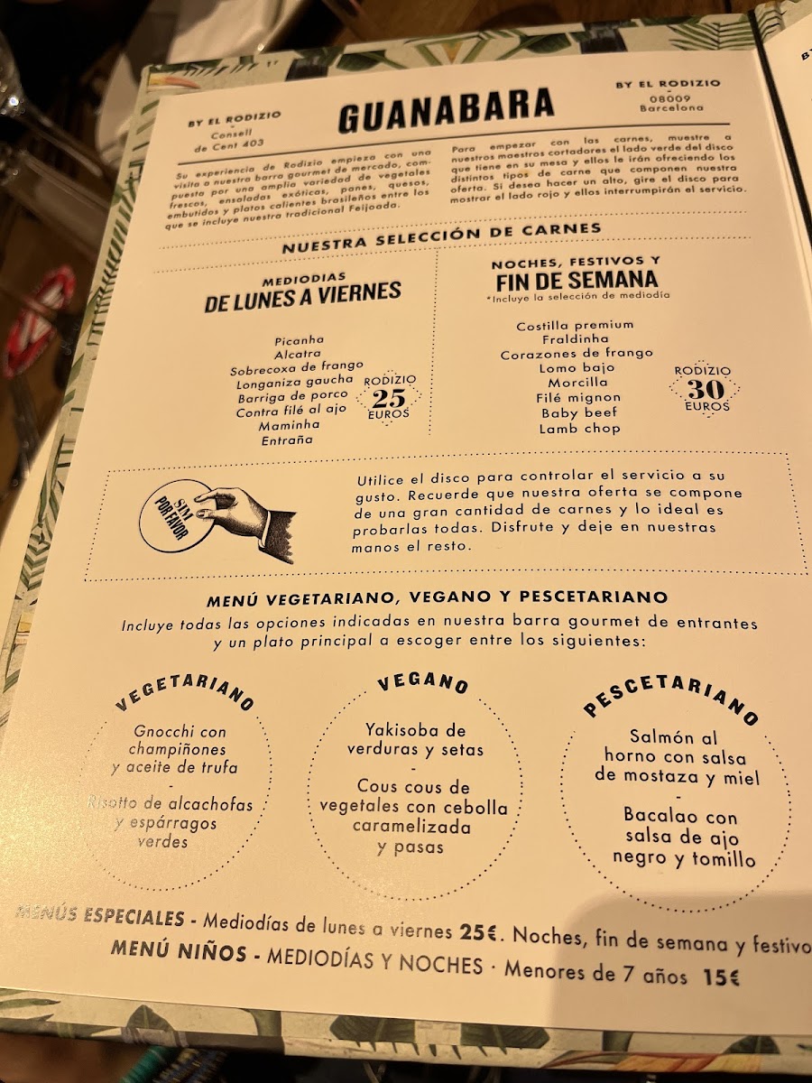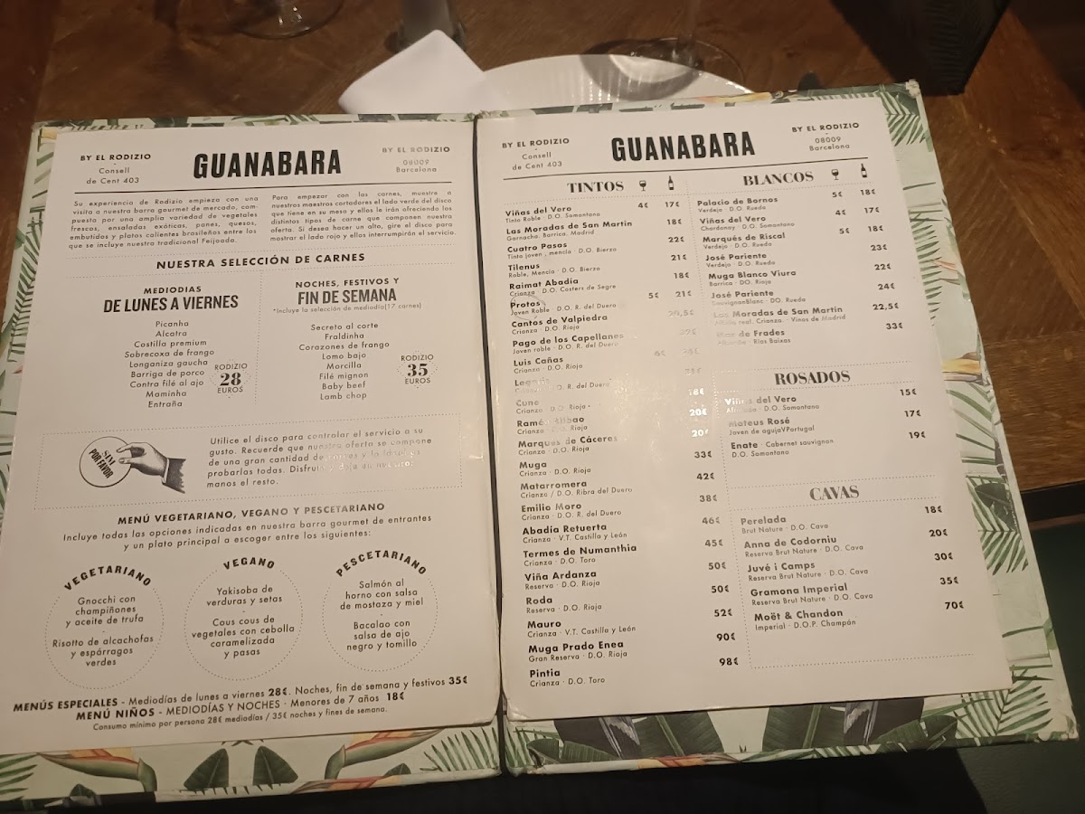 Welcome to Guanabara, a vibrant culinary gem nestled in the heart of Barcelona's L'Eixample district. This delightful restaurant specializes in Brazilian-style barbecue, offering an all-you-can-eat buffet experience that is a feast for the senses. Guests can indulge in a myriad of flavors, from succulent cuts of meat to an array of appetizers, including sushi and cheese. Each dish is expertly prepared and served directly to your table, ensuring freshness and satisfaction.